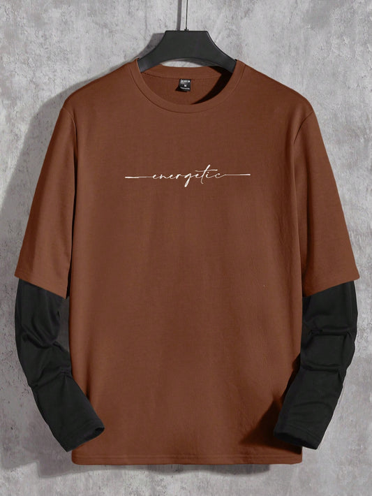 Manfinity Rebelgame Men T-Shirts Fit Crew Neck Drop Shoulder Long Sleeve Slogan Tee Casual Back to School Clothes Summer Polyester