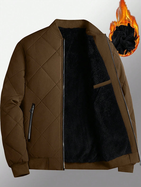 Manfinity Homme Loose Fit Men'S Solid Color Thermal Lined Bomber Jacket